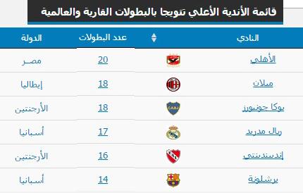 صفحة النادي الأول عالميا من ناحية البطولات القارية الأهلي المصري
